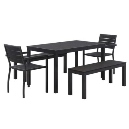 Eveleen Outdoor Dining Table Set, 55″ x 35″ x 29″ Rectangular Table, 2 Benches, 2 Armchairs, Gray/White