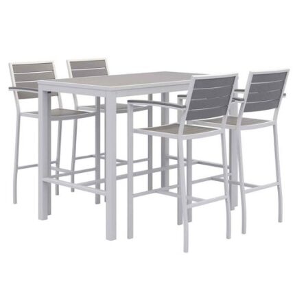 Eveleen Outdoor Bistro Patio Table with Four Gray Powder-Coated Polymer Barstools, 32 x 55, Gray