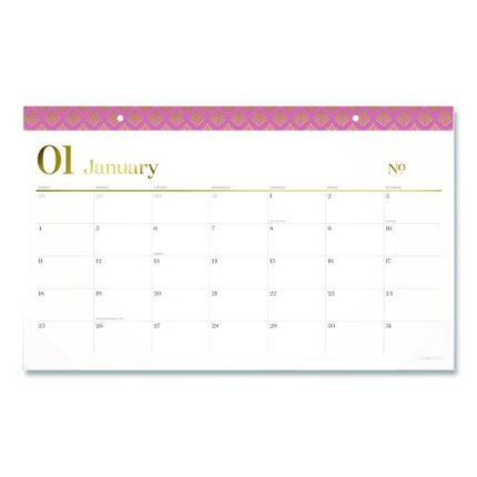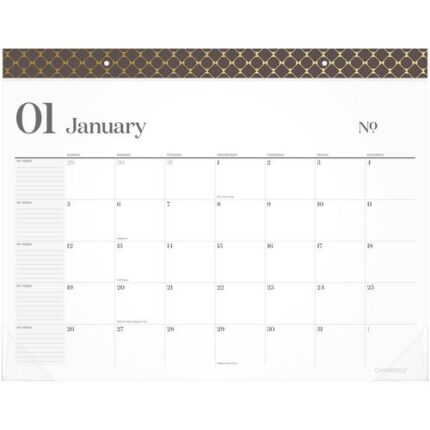 WorkStyle Monthly Desk Pad Calendar, 21.75 x 17, White Sheets, Brown/Gold Headband, Clear Corners, 12-Month (Jan-Dec): 2025